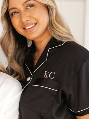 Every Bride Tribe piece is personalised in-house in Australia. Our small all-female team uses professional embroidery machines to stitch names, initials, and titles directly onto robes, pyjamas, and accessories — made to order, just for you.