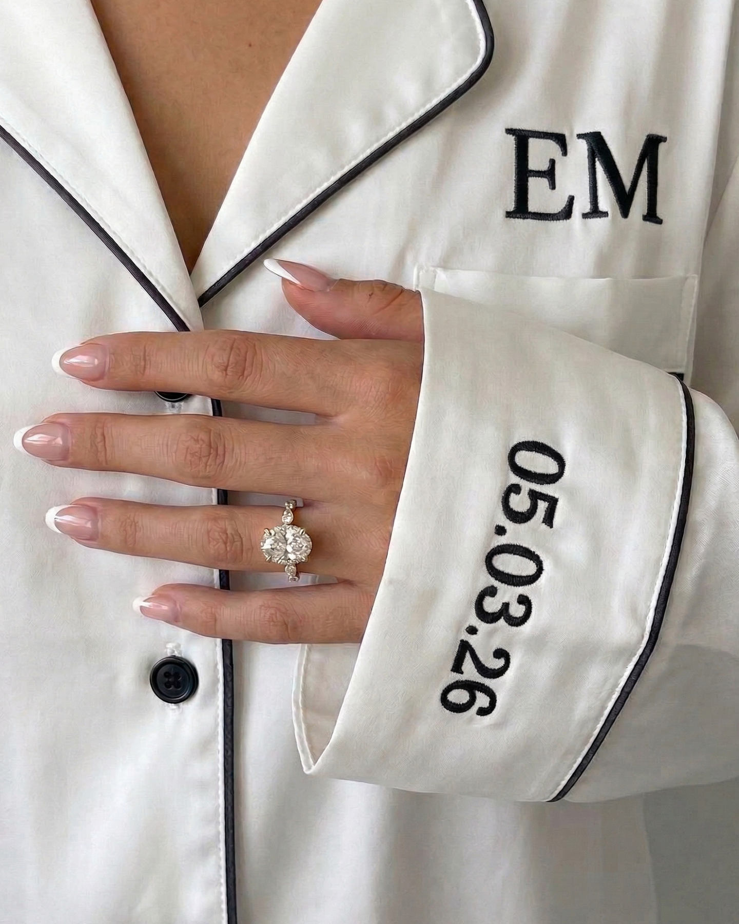 Our pyjamas and robes come plain as standard. We offer personalised embroidery as an optional add-on, so you can choose to add “Bridesmaid,” “Bride,” or any custom wording you like. To include embroidery, simply click the Personalise button on the product page and enter your details before checkout.