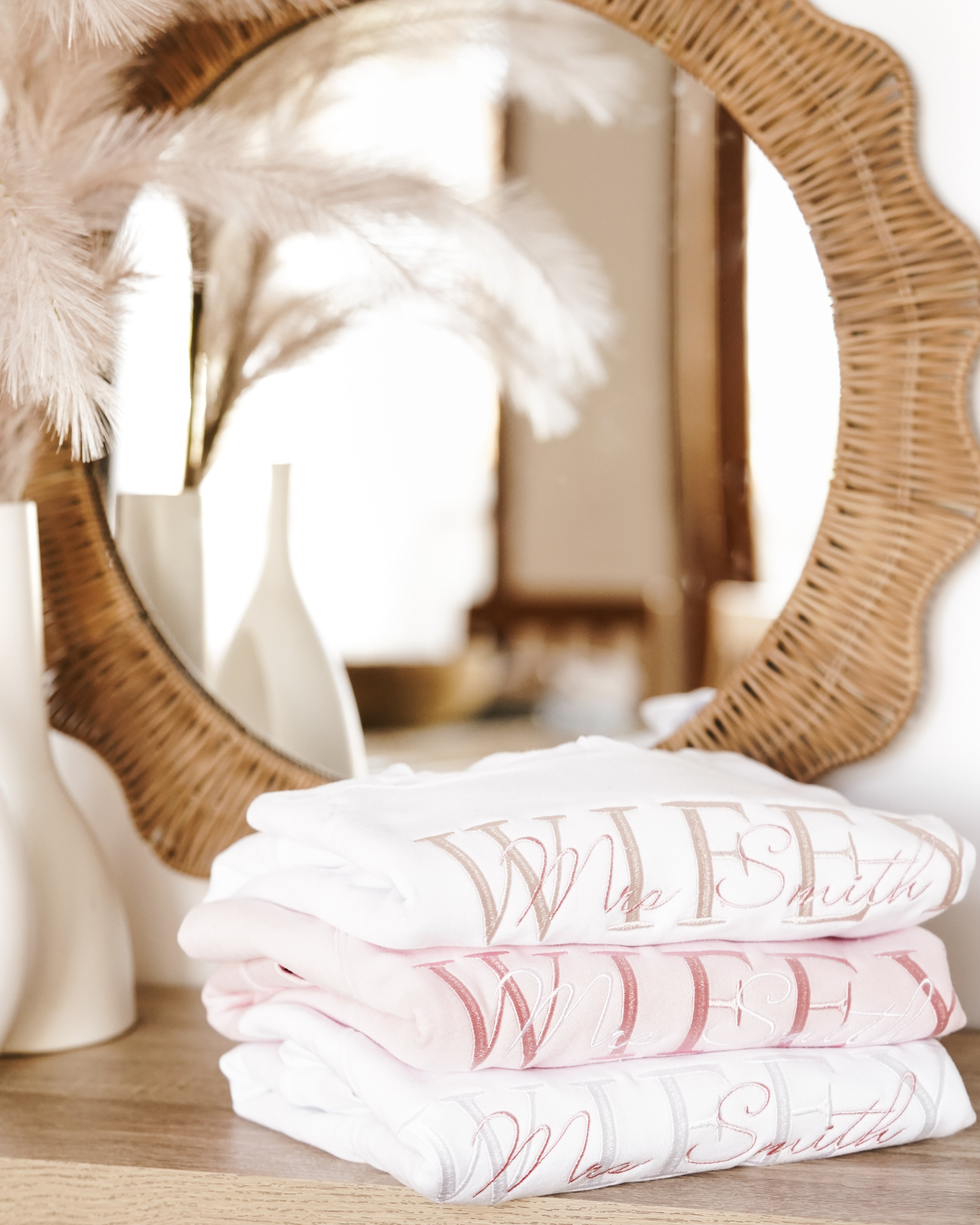 Super soft and luxe, our personalised wifey t-shirt is the cutest way to show off your new status.