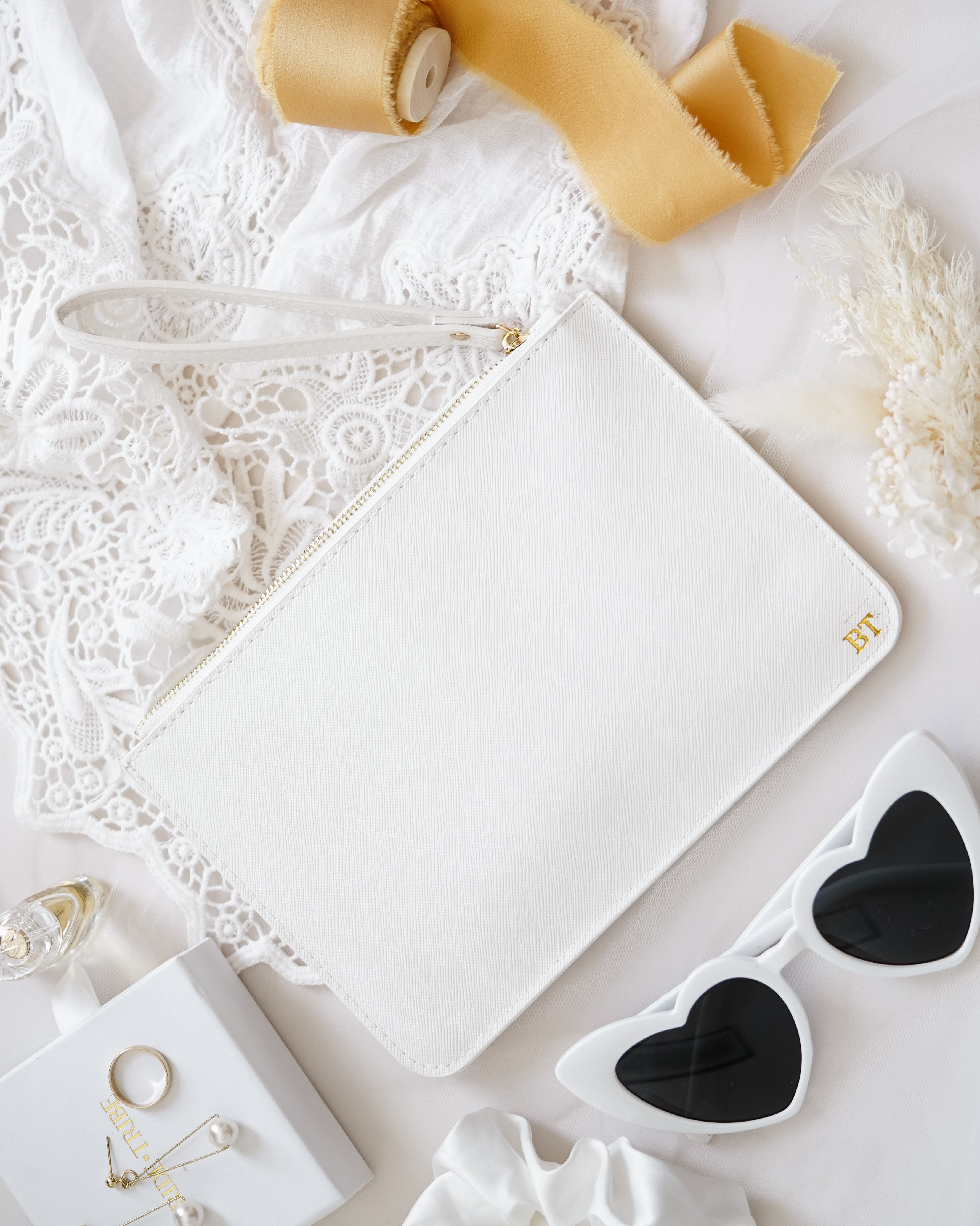 Choose from beautifully monogrammed gift boxes, personalised wristlets, card holder wallets, makeup bags, and clutches, all designed to add a personal touch. Complete the experience with elegant wine glasses and coupe glasses with personalised ribbons, or opt for a custom bridesmaid gift bag for a stylish and sentimental presentation.