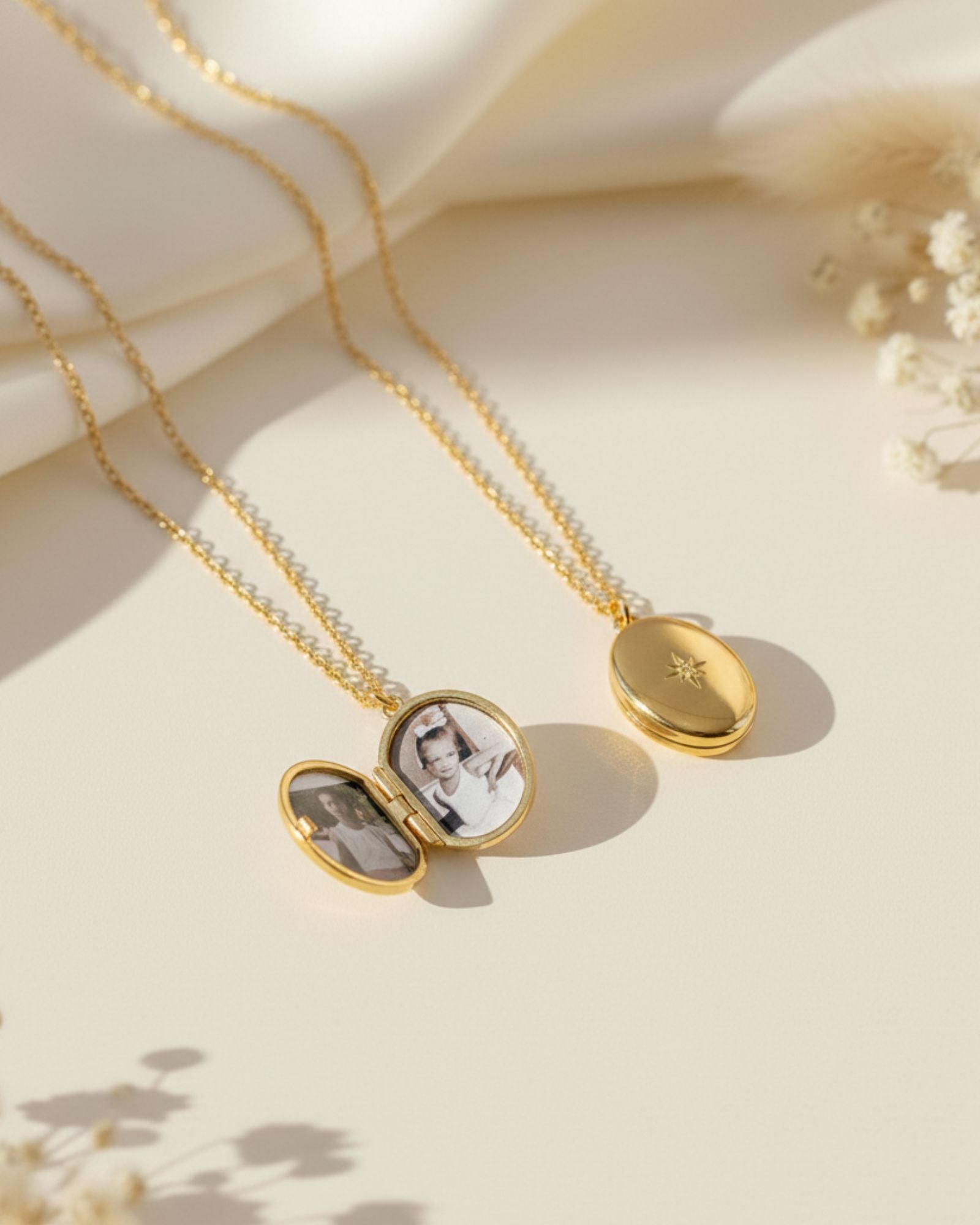 Our personalised photo lockets are designed to hold your most meaningful moments. Each locket opens to reveal a tiny black and white photo inside, creating a timeless keepsake to be worn close to the heart.