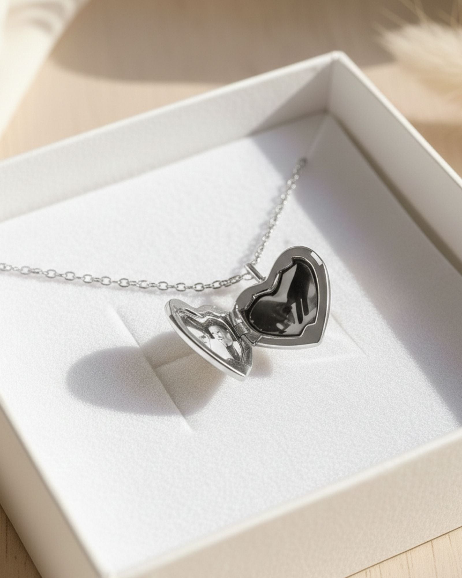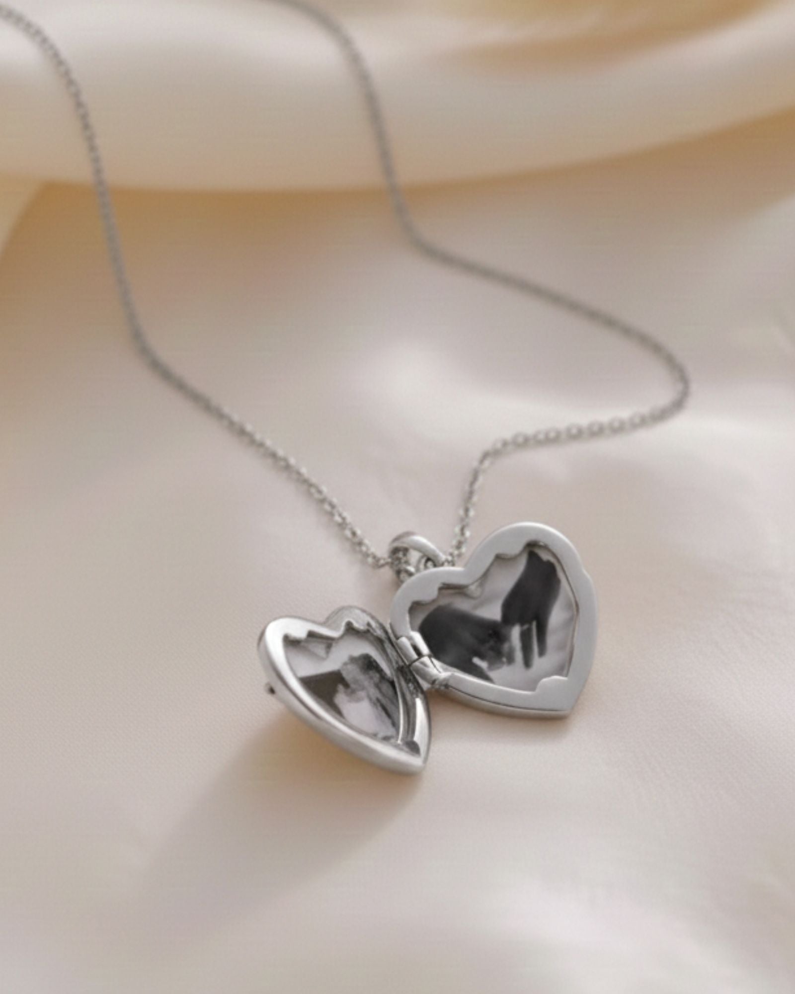 Our silver heart photo locket necklace is a classic and meaningful way to hold your most treasured memory. Each locket opens to reveal a tiny black and white photo inside, creating a personalised keepsake designed for everyday wear or heartfelt gifting.