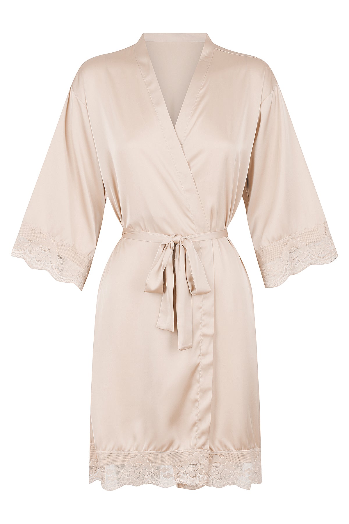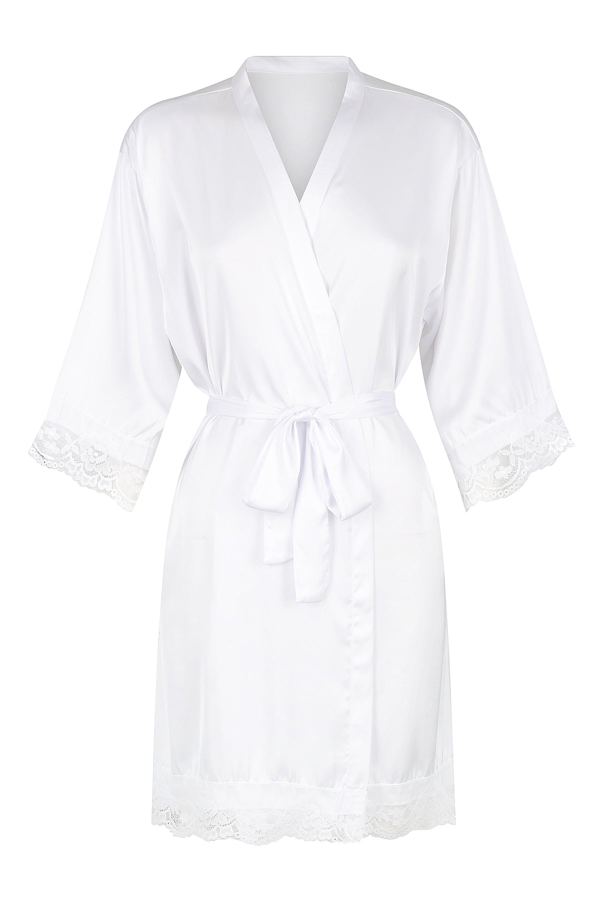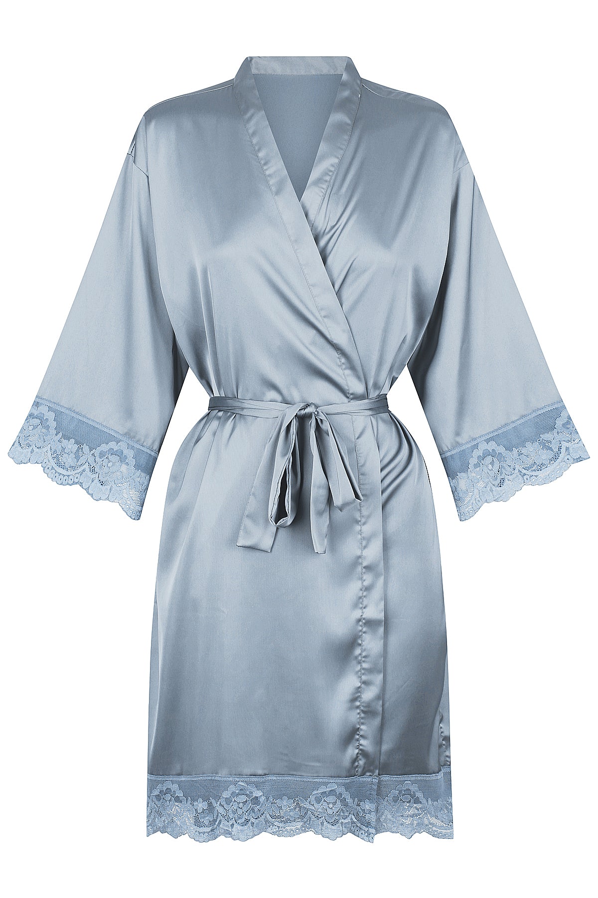 The Love Lace Satin Robe is a lightweight bridal robe with a delicate lace trim, designed for a soft and romantic look. Perfect for brides and bridesmaids who want something feminine yet comfortable, this style drapes beautifully with its satin look sheen.