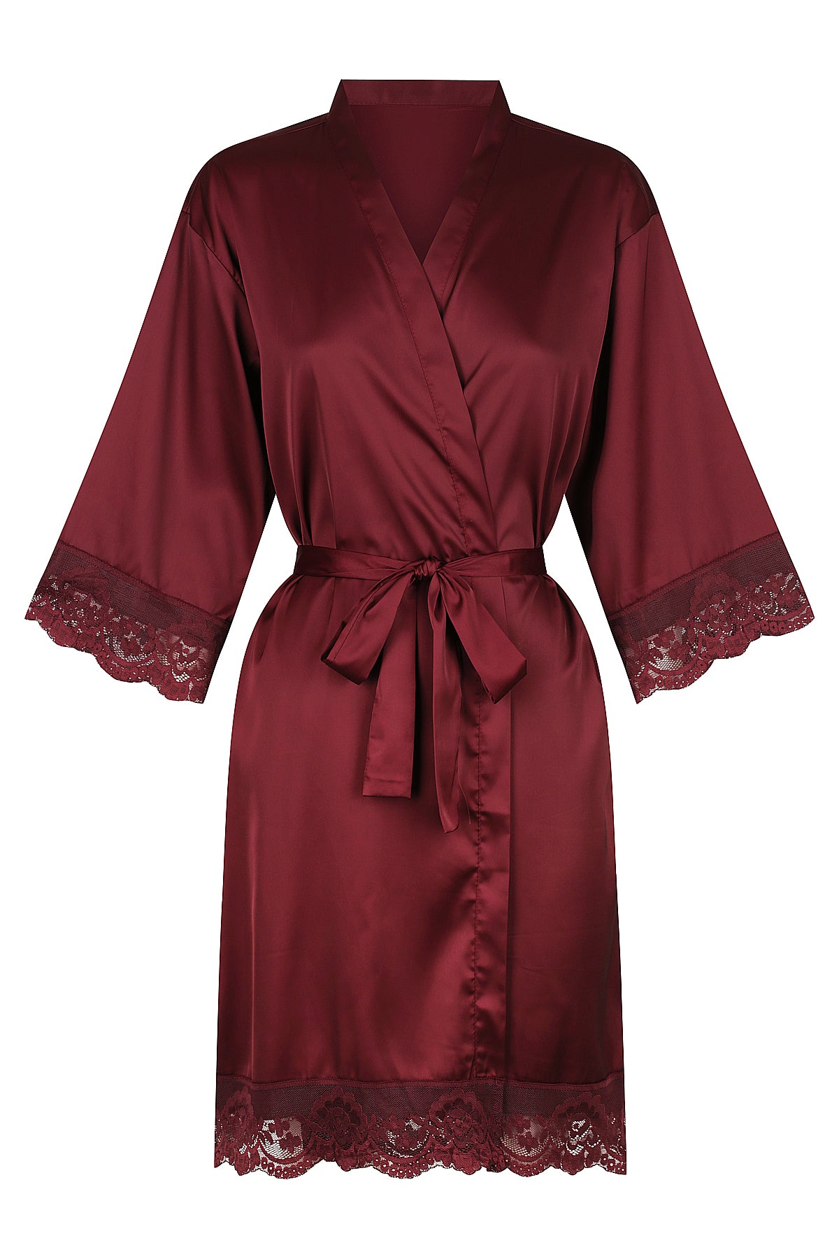 Made from our premium polyester and spandex satin blend, it features flattering 3/4 sleeves, inner ties, and a waist belt for a secure fit. Personalise with embroidery on the front, back, or both, or keep plain for a simple, elegant finish.