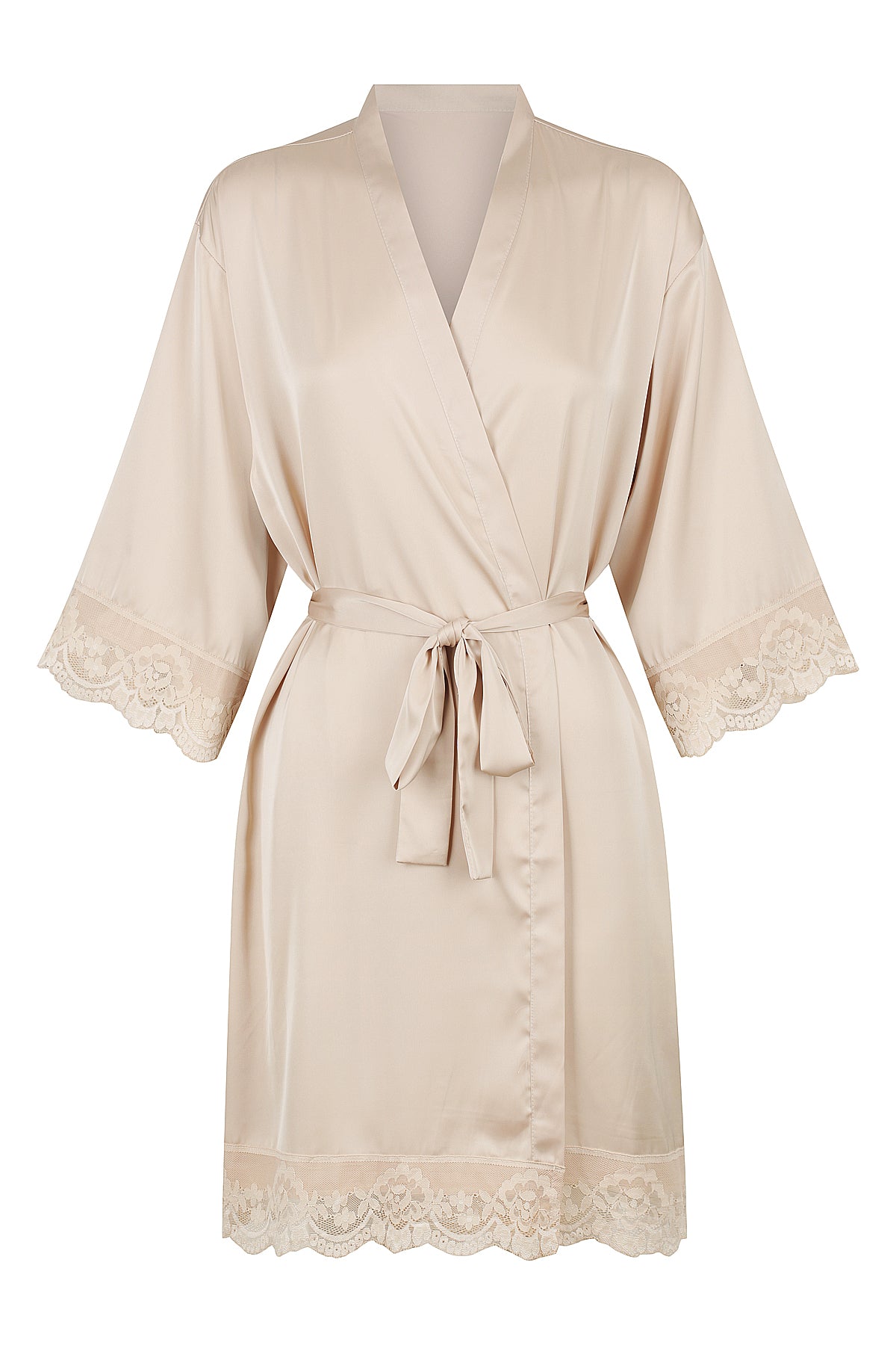 Made from our premium polyester and spandex satin blend, it features flattering 3/4 sleeves, inner ties, and a waist belt for a secure fit. Personalise with embroidery on the front, back, or both, or keep plain for a simple, elegant finish.