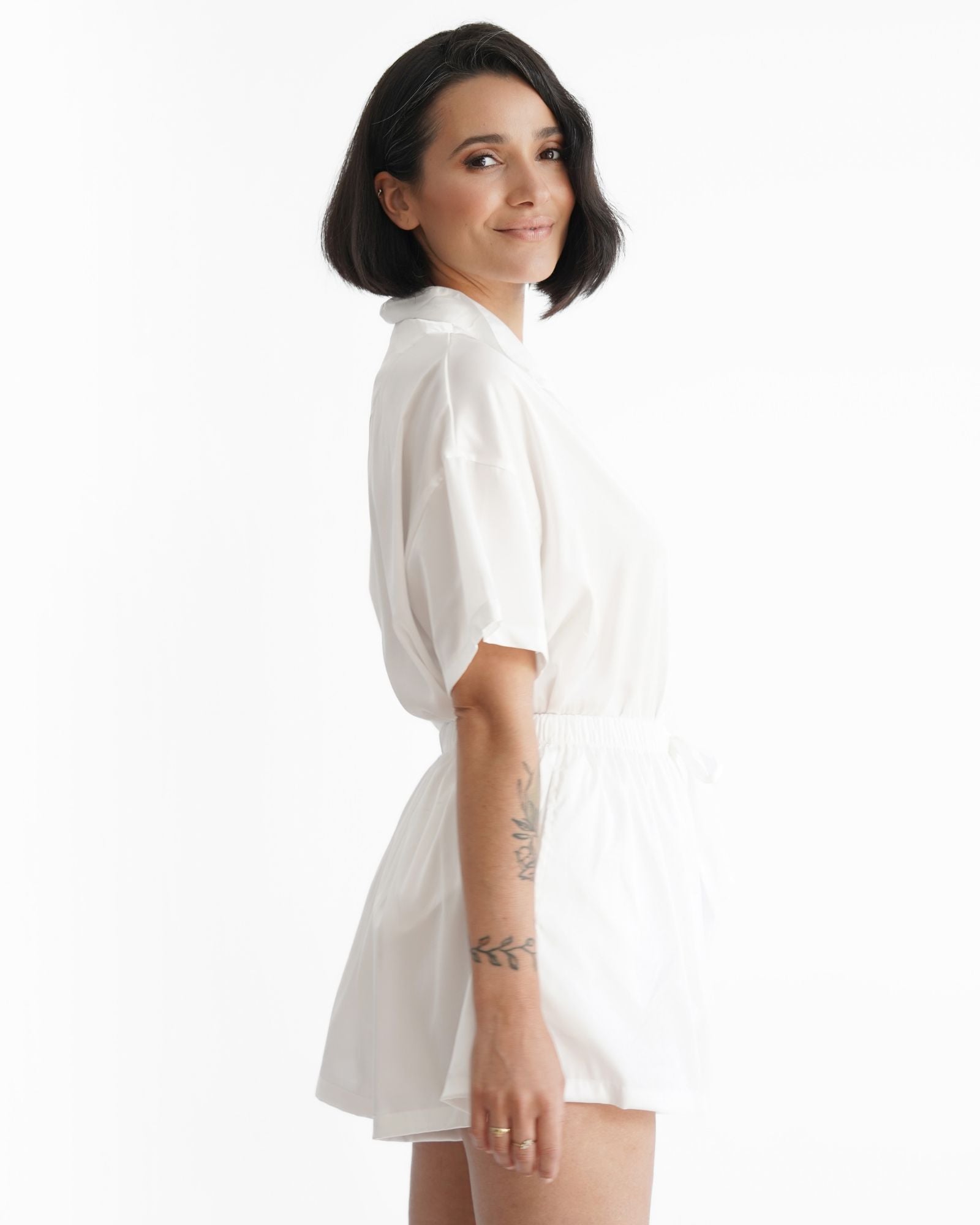 Slip into effortless elegance with our Kara Satin Bridesmaid Pyjamas. Designed in an oversized, relaxed fit, these pyjamas are perfect for getting ready moments, bridal parties, or simply indulging in everyday luxury. Crafted from a premium polyester and elastane matt satin blend, they offer the perfect balance of softness, drape, and comfort. Finished with thoughtful details like pockets and a decorative waist tie, they’re a chic and practical choice for every bridesmaid.