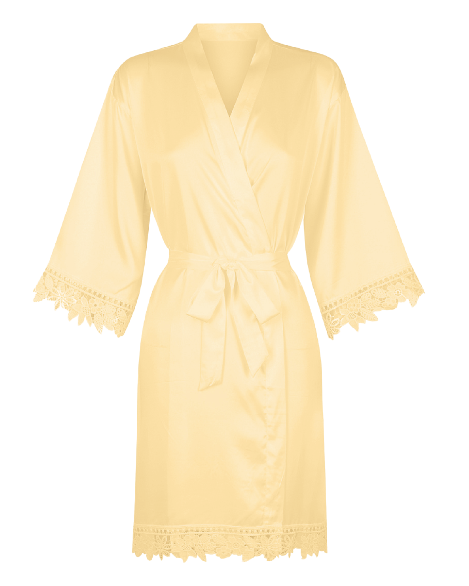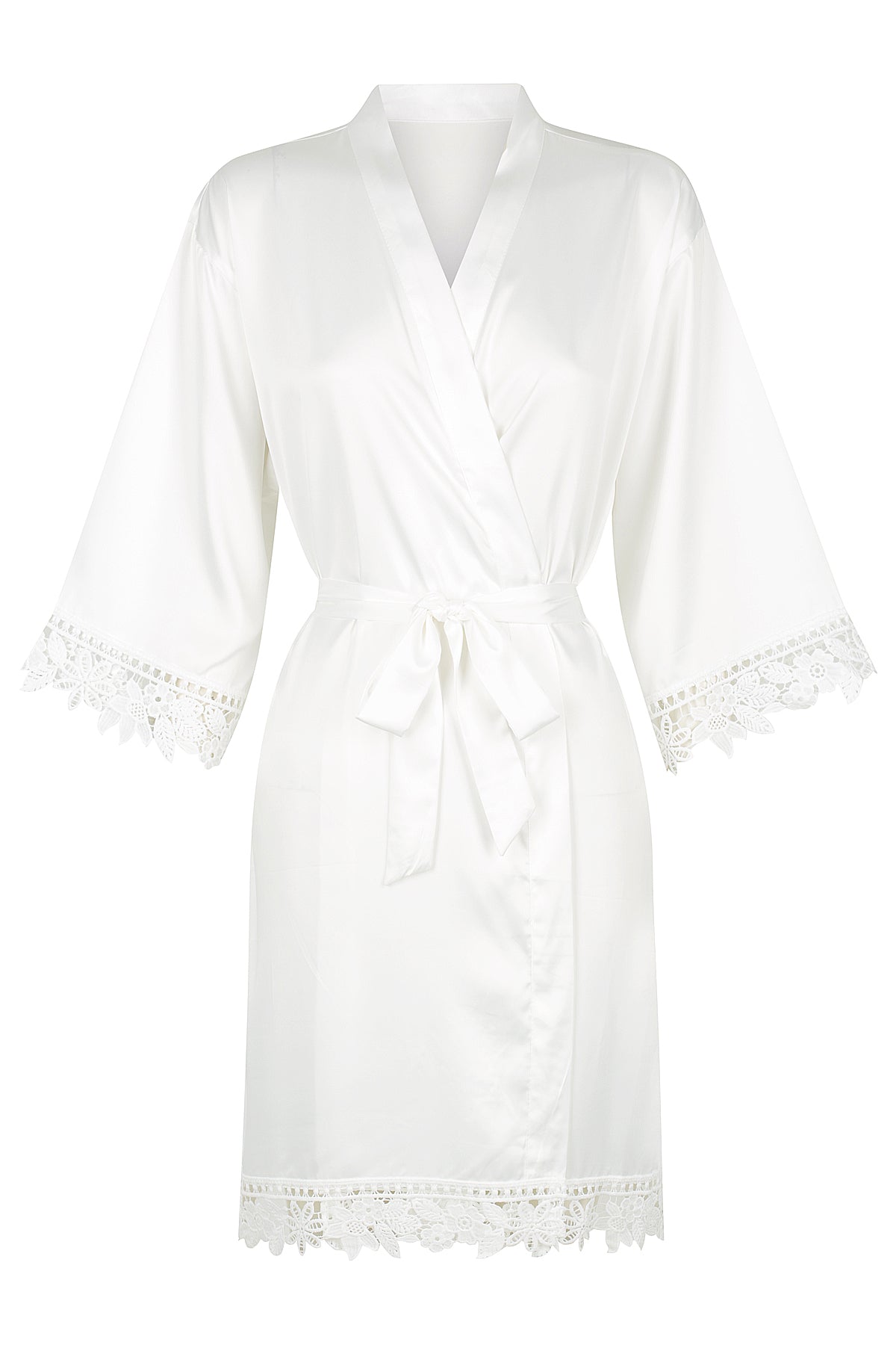 The Rosie Lace Satin Robe is one of our most loved bridal robes, designed with a luxurious satin look matte finish and delicate rose lace trim on the sleeves and hem. This elegant style is a favourite for wedding mornings, bridal parties, and bridesmaid gifts, offering a touch of romance with its floral lace detailing.